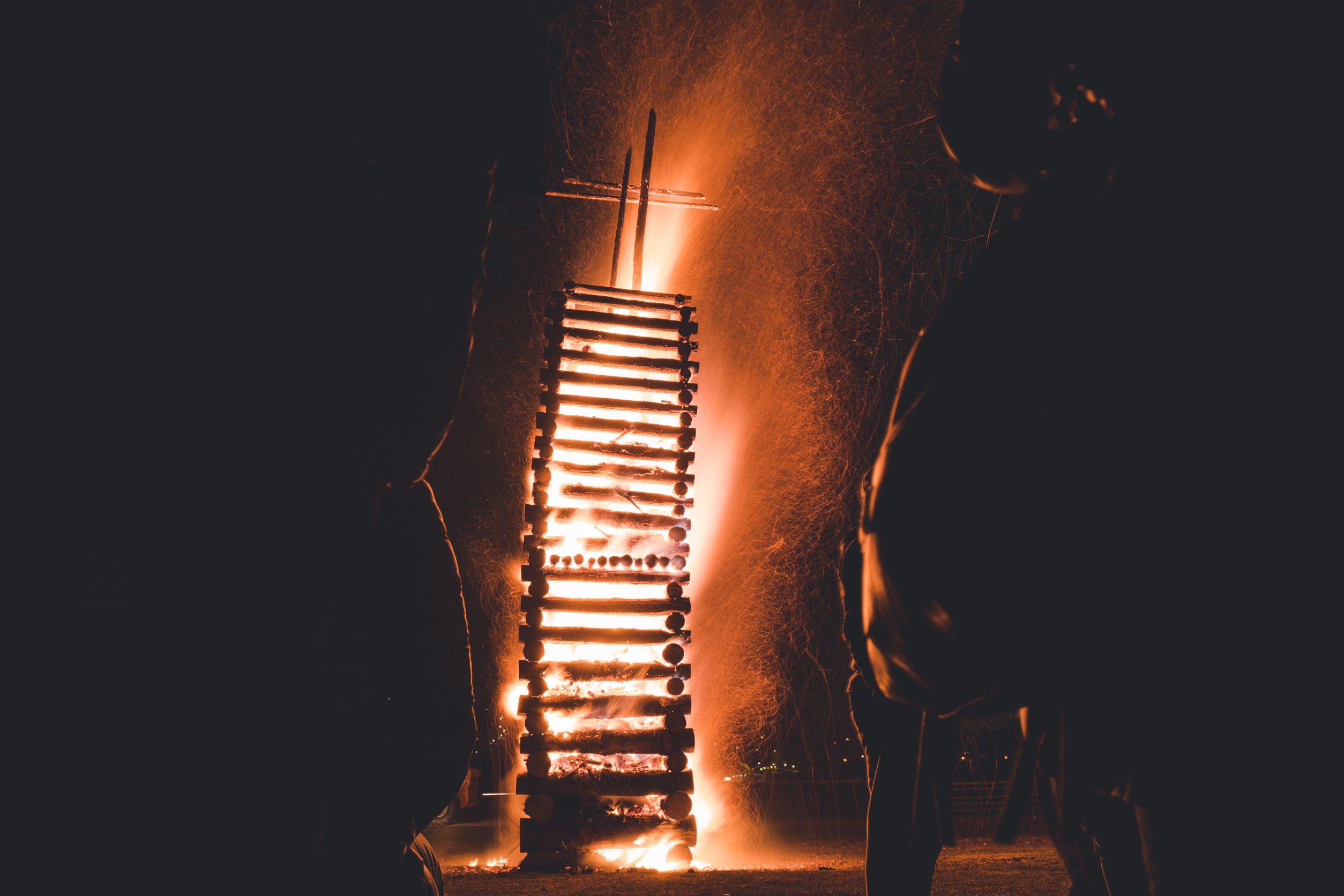 Entzünden des Osterfeuers am St. Martiner Berg am Karsamstag.