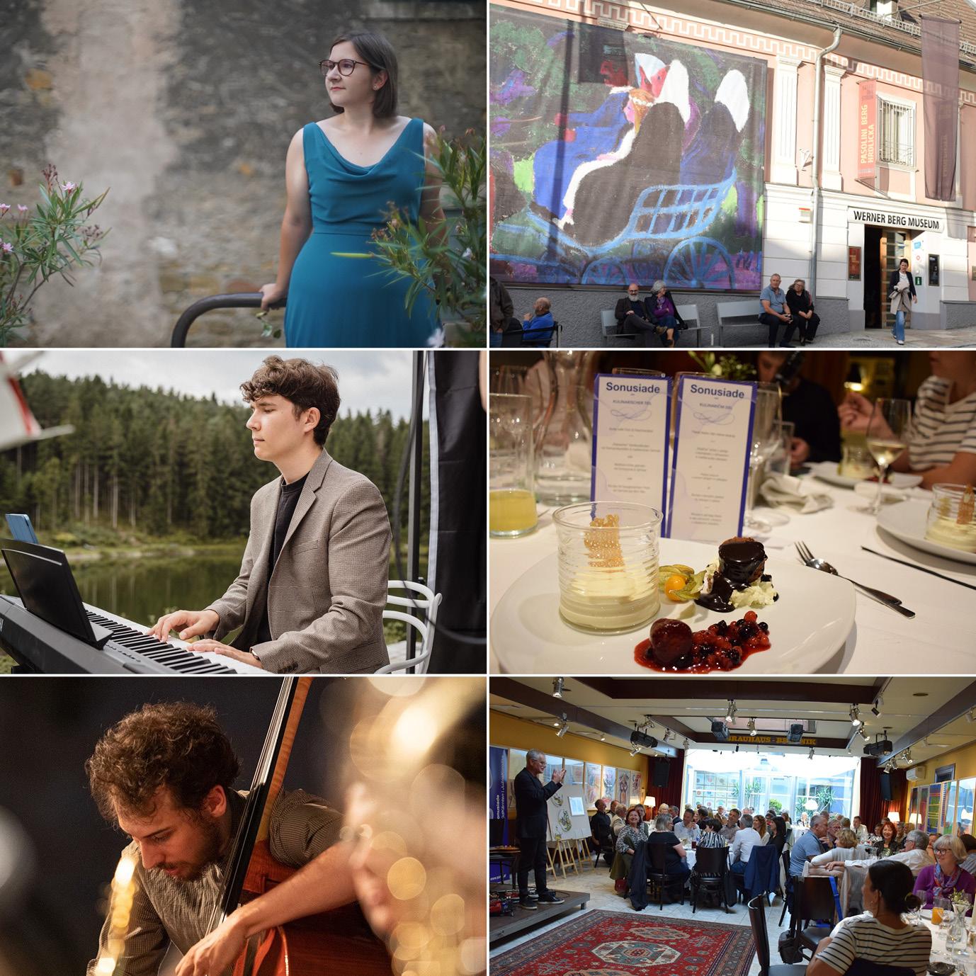 Mit einem Begrüßungsglas Prosecco und etwas Süßem starten wir im legendären Cafe der Familie Stöckl, wo uns nach der Begrüßung der geführte Besuch der diesjährigen Ausstellung »Mikrokosmen – Helnwein/Berg/Giacometti« im Werner Berg Museum bevorsteht und Musik aus der SONUS Musikwerkstatt erklingen wird. Danach erwartet uns als Finale ein musikalisch-kulinarisches mehrgängiges Abendessen im Brauhaus Breznik, bei dem uns die feine Küche des Hauses und die Jazzsängerin Anja Smolnik mit Thomas Quendler am Klavier und Jakob Gönitzer am Bass, verwöhnen werden.