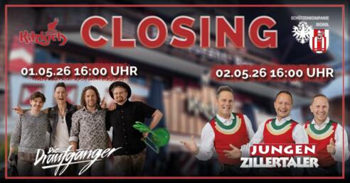 Das Kitzloch Closing ist ein stimmungsvolles zweitägiges Event am 01. und 02. Mai, das direkt vor dem Kitzloch in Ischgl stattfindet und gemeinsam mit der Schützenkompanie Ischgl organisiert wird. Es bildet den perfekten Abschluss der Wintersaison und lädt Einheimische wie Gäste dazu ein, noch einmal gemeinsam zu feiern, zu tanzen und die besondere Atmosphäre in einem der beliebtesten Treffpunkte Ischgls zu genießen.