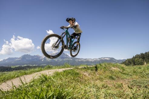 Auf den OD Trails, unserem vielseitigen Übungsgelände mit Bike-Schlepplift, üben wir einen Tag lang die richtige Sprungtechnik zuerst im Flachen und später über Tables und Drops.