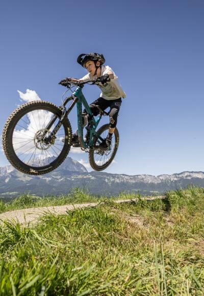Die wilden Teenager lernen bei uns die Fahrtechnik Basics von Grund auf und sind dadurch kontrollierter, sicherer und mit viel mehr Spass unterwegs. Wir rocken bekannte Trails der Region Kitzbüheler Alpen. Allen voran natürlich der Hahnenkamm Trail in Kitzbühel oder am bekannten Kirchberger Sportberg Gaisberg bezwingen wir den Lisi Osl oder auch den Gaisberg Trail. Nicht fehlen darf auch für gute Gruppen einer der Tiroler Signature Trails – der Fleckalmtrail. Weitere Trails im Brixental oder St. Johann runden das Angebot ab.
