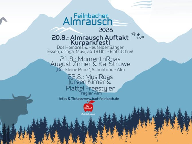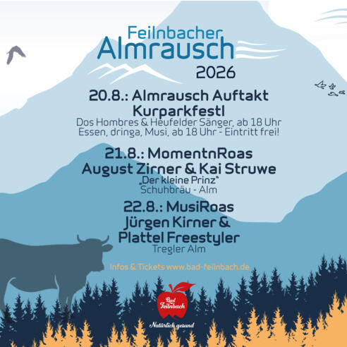 Die Anforderungen Sportregion, Bioreservat, Wirtschaftsraum, einmaliges Natur- und Kulturerlebnis, konsequent, ehrlich und in Einklang mit Natur und Besuchern – gepaart mit der typischen Herzlichkeit des Almrausch-Teams, zusammenzubringen – werden auch 2026 wieder glücken und glücklich machen. Der „Feilnbacher Almrausch“ das Festival der Gipflstürma – mehr Erlebnis als Event, „Momente statt Evente“- wie das Almrausch Team der Kur- und Gästeinformation und Andrea Hailer immer gerne sagen.